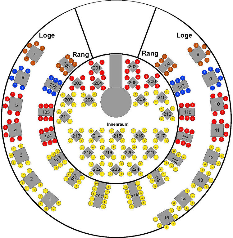 Rollstuhlplätze stehen leider nur begrenzt an den Tischen 102 (Platz 3), 107 (Platz 4), 108 (Platz 4) & 113 (Platz 3) zur Verfügung. Wir bitten Sie daher um telefonische Reservierung unter 0521 555 444. Schwerbehinderte mit Schwerbehindertenausweis (Vermerk "B") erhalten bei Bedarf eine Freikarte für eine Begleitperson. Die Kasse, das Foyer und der Saal sind barrierefrei.